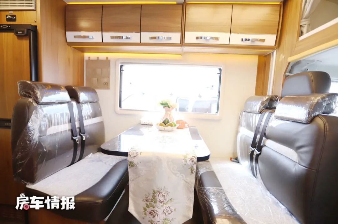 这款房车搭载了依维柯欧胜的底盘,全车的尺寸为5965mm*2400mm*2995mm,不到六米的车身长度满足蓝牌C本驾驶,整车采用了低重心的设计,提升了行驶途中的稳定性。