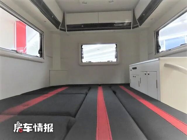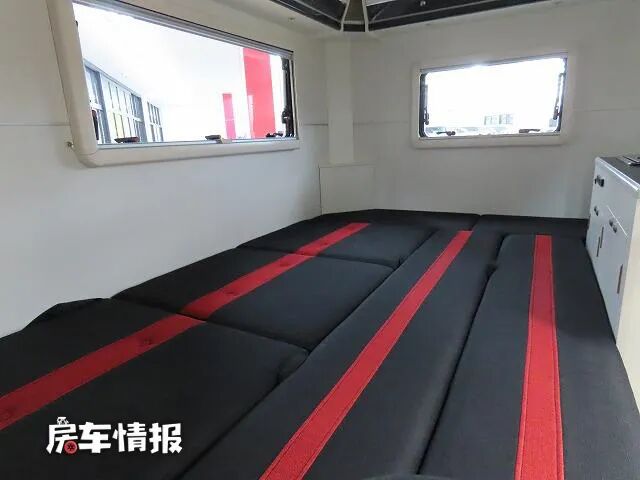 除此之外,在前方的驾驶室上方的额头区域内,也配置了一张可容纳两个人使用的双人额头床,只不过没有可以通风换气采光的窗户。