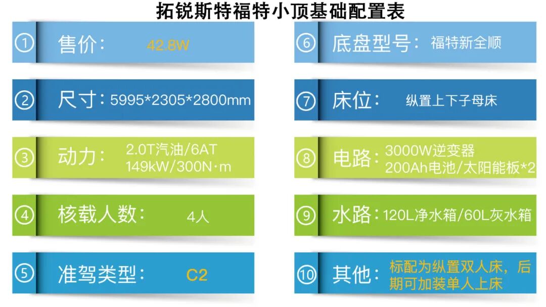 这样一款搭载了福特新全顺底盘所打造的拓锐斯特小顶C型房车,现在的价格是42.8万元,结合整车的配置您觉得如何呢?也欢迎您在下方的评论区和我们分享您对此车的观点和看法,如果您想了解更多最新的房车资讯也请继续关注我们,下期再见~