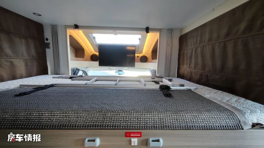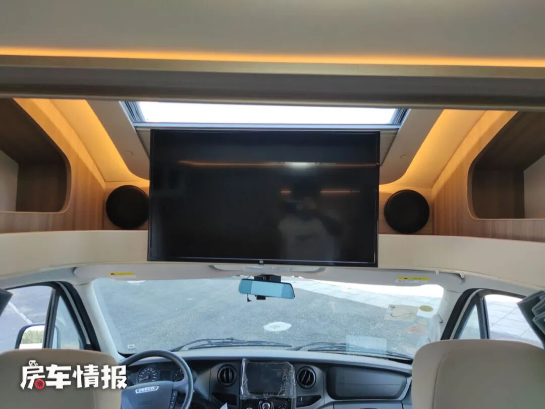 在驾驶室上方配备了一台32寸的智能液晶电视,平时看看剧打发休闲的时光也是非常惬意的。