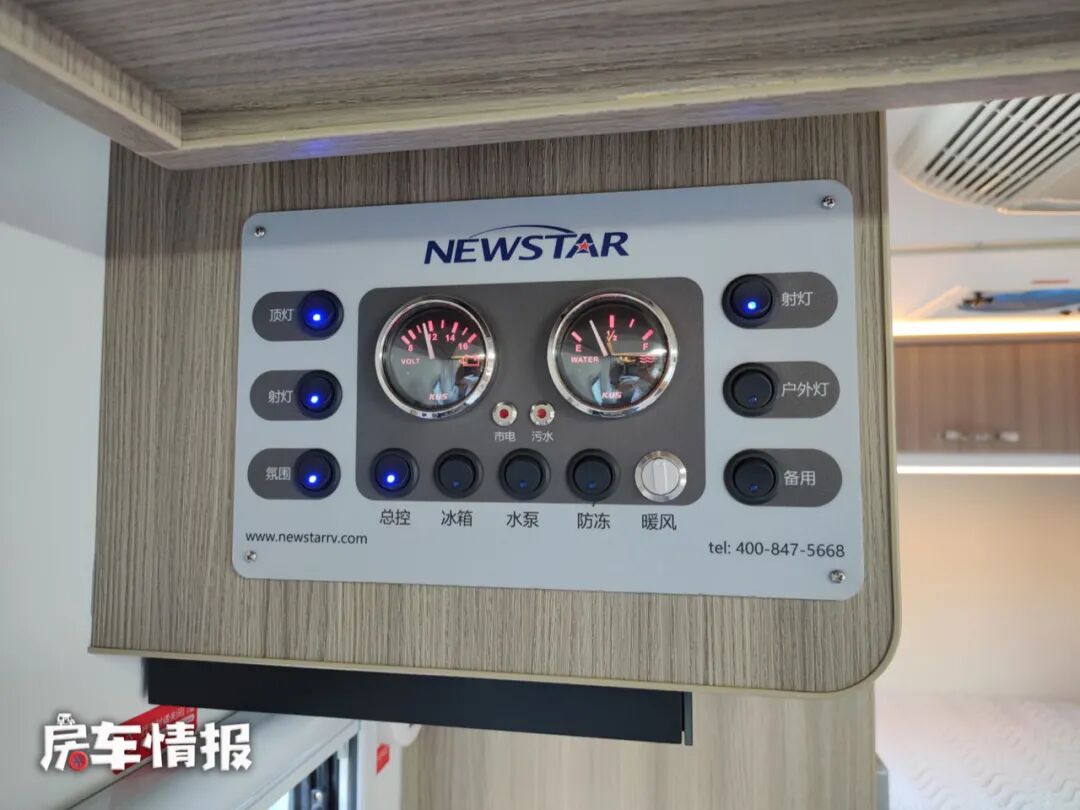 电路上,这款房车搭载了一台3000W的逆变器,并提供了700Ah的锂电池,后期有需要还可以升级为1000Ah的锂电池;水路上则提供了200L的净水箱和70L的污水箱。