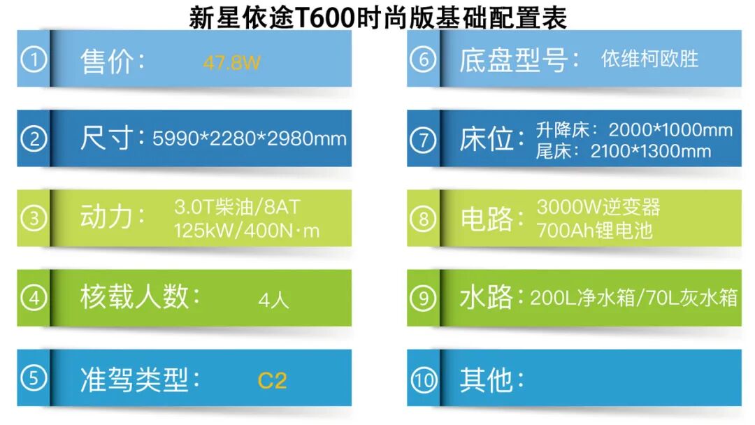 这款采用依维柯欧胜底盘所打造的新星依途T600时尚版房车,现在的报价为47.8万元,您觉得如何呢?欢迎在下方评论区留下您的看法和观点,下期见~