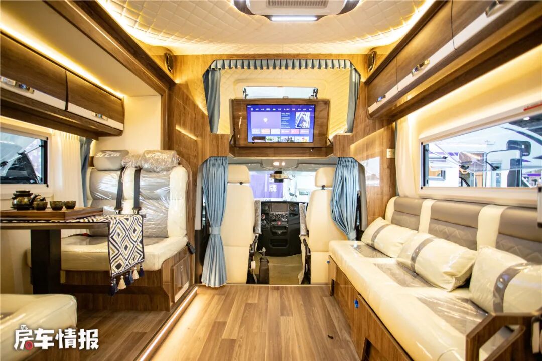 进入车内,可以看到整个车内的布局方式在意料之中,车厢前方区域为单独的生活区域,打开拓展以后,生活区空间非常大,甚至比很多双拓展车型还要大,一家人在车内活动更加轻松。