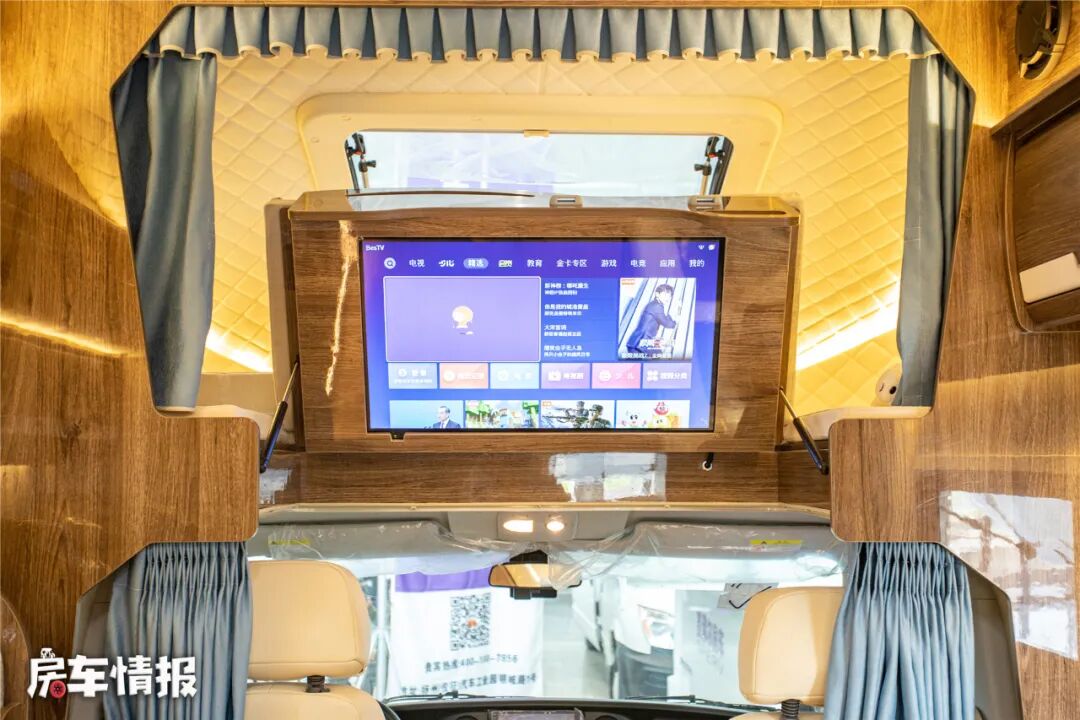 打开床板,下方是一台32寸台液晶电视,便于在旅行中观看自己喜欢的电视节目。