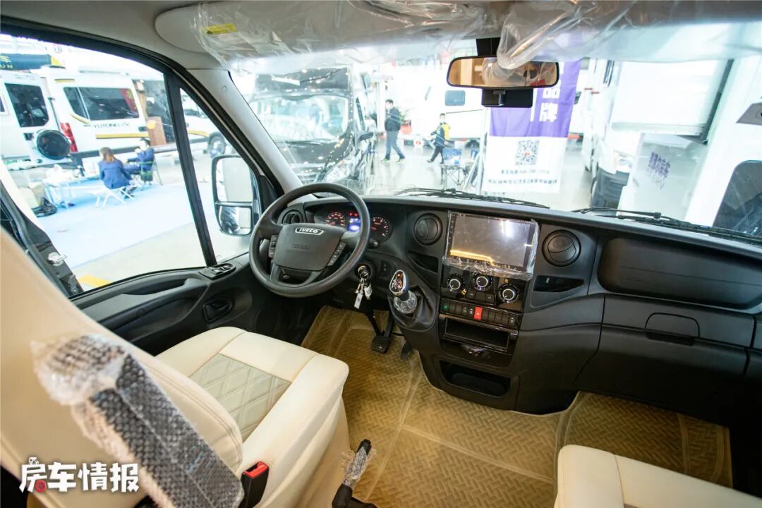这款新车是由赛沸尔房车基于南京依维柯欧胜底盘打造的一款自行式C型房车,整车外观造型和同类型其它品牌车型相似,大额头设计保证了内部可以有一张尺寸挺大的床铺,整车尺寸长宽高分别为5995*2530*3150mm,长度不足6米满足C本蓝牌驾驶,2530mm的车身宽度也为车内横向空间提供了更加充足的保障。