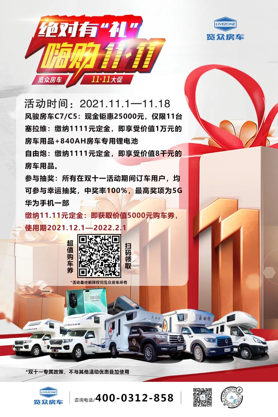 燃动双十一,嗨购览众房车房车尊享好礼!直降2万5!