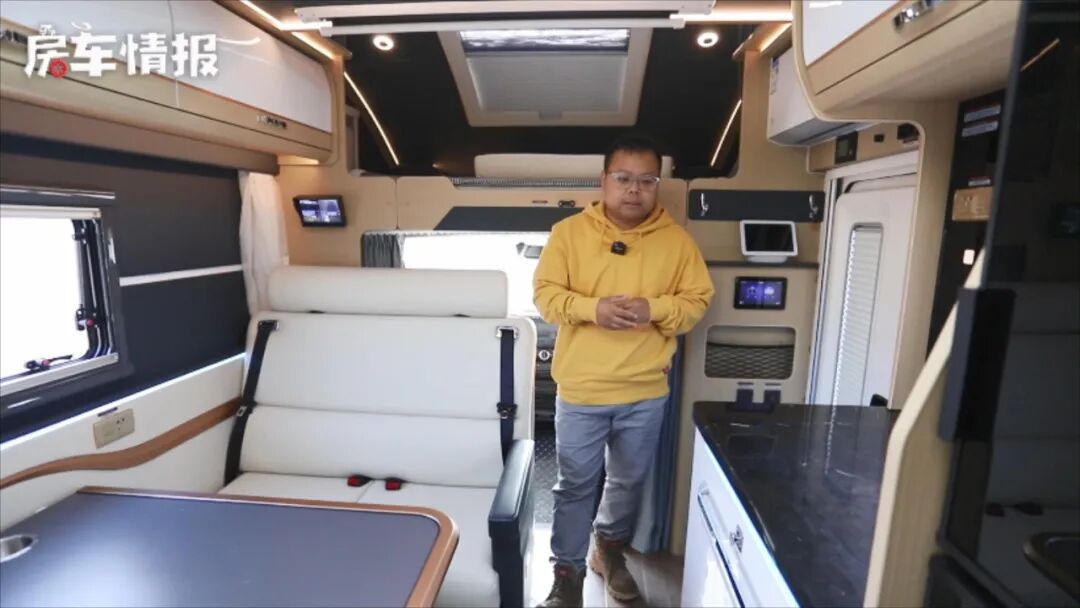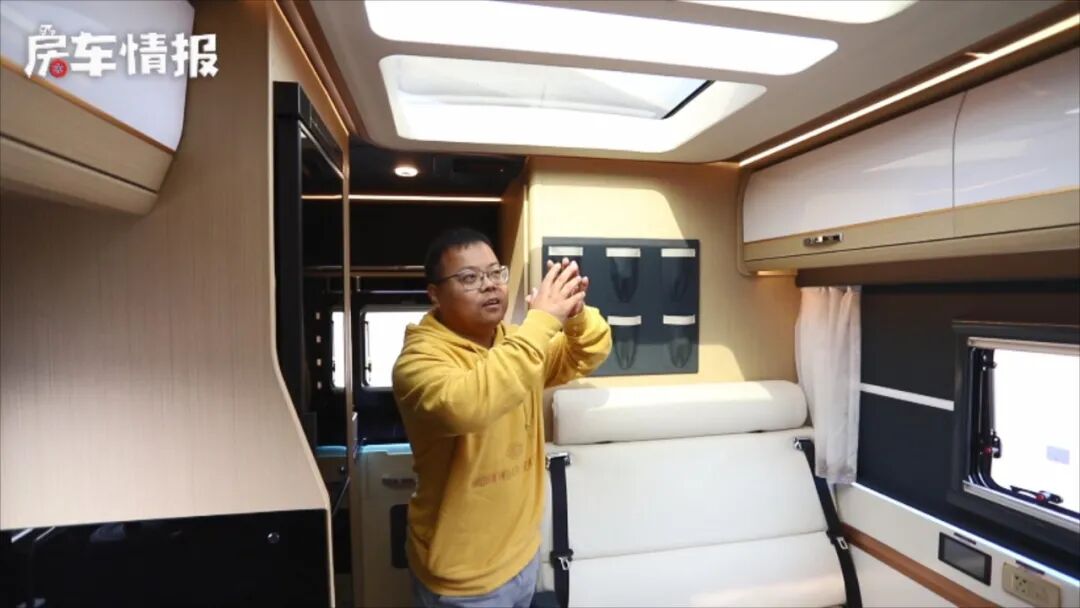 我工作的这些年,见过的房车布局已经有了三五百款,但是今天这款房车设计真的是第一次见!这款新车基于进口依维柯NEW DAILY底盘打造而成,外观上看就是一款标准的大额头C型房车,和主流车型区别不大,很难发现它的创新点在哪儿~但是,当进入车内后就会发现,车厢内部采用了一个偏商旅风格的设计,整体比较豪华温馨,并且对卡座沙发的尺寸比较大,舒适也很不错,更令人意外的是在车厢顶部还提供了全景天窗,而且还是可以打开,要知道这可是只有在家用车或者商务车型上才会出现的设计,在一款C型房车上真的是第一次见!更多详情还是来看视频吧~