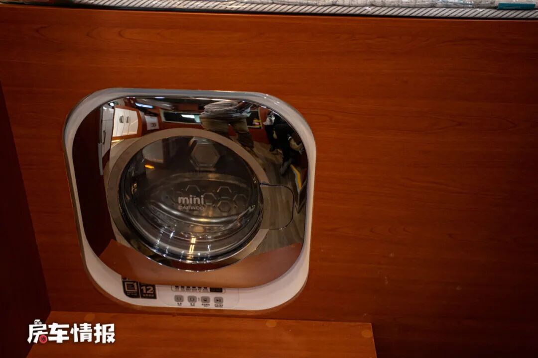 尾床下面还镶嵌了一台小型的洗衣机,平时可以洗一些小型衣物,方便又实用。