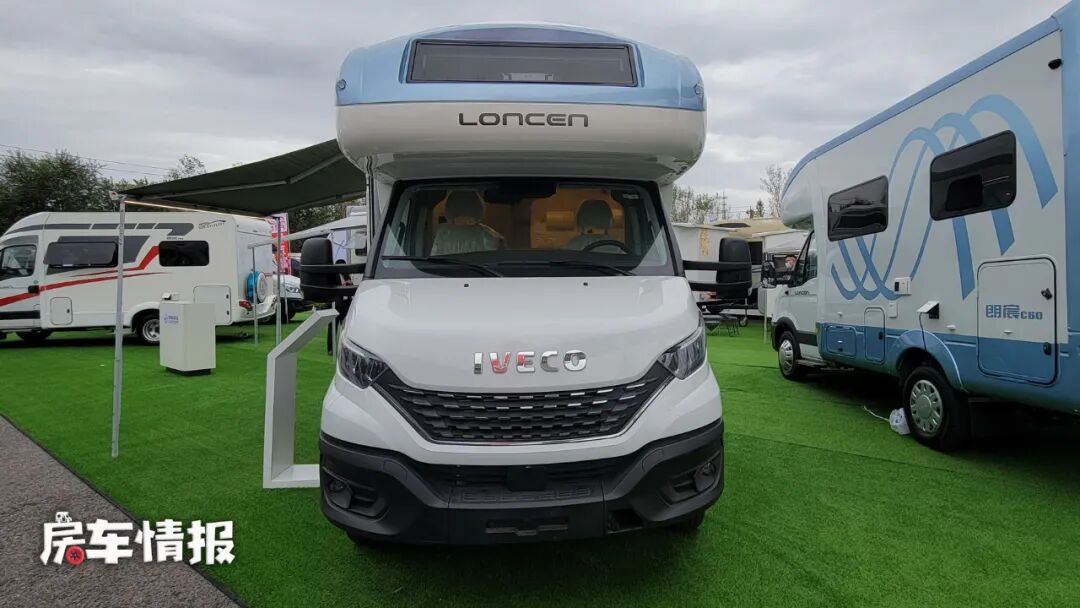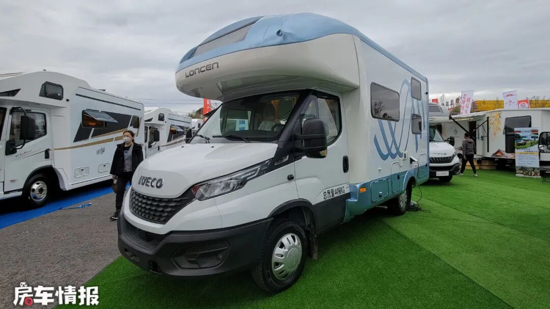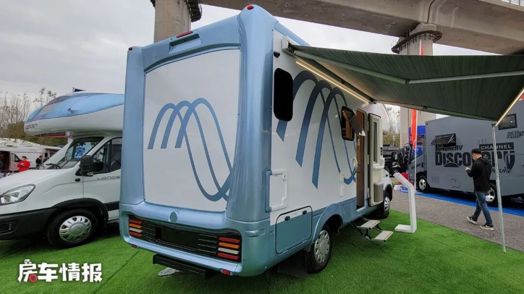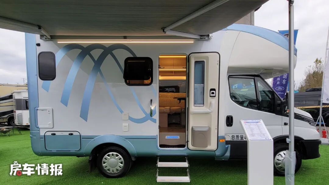 这款房车是基于4.5吨的进口依维柯New Daily底盘所打造的,车身尺寸方面,还是在符合可以上蓝牌的规定之内,长宽高分别为5995*2350*3250mm,外观采用标准的大额头式设计,整体的造型更加圆润平易近人,尤其是采用了淡蓝色的拉花也使整辆车更显青春和活力。