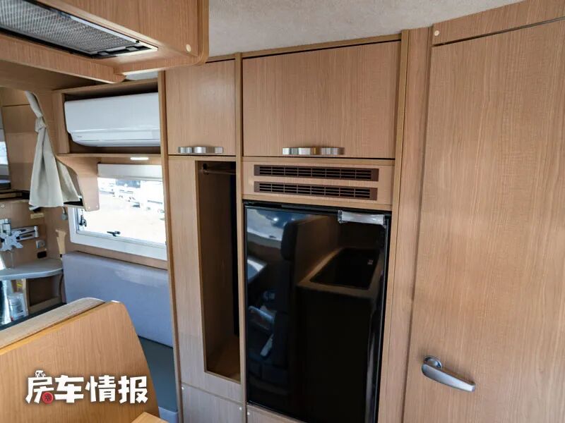 另外全车还提供了一台90L的车载冰箱以及诸多的储物柜在长条沙发的后方,方便后期使用以及拿取。