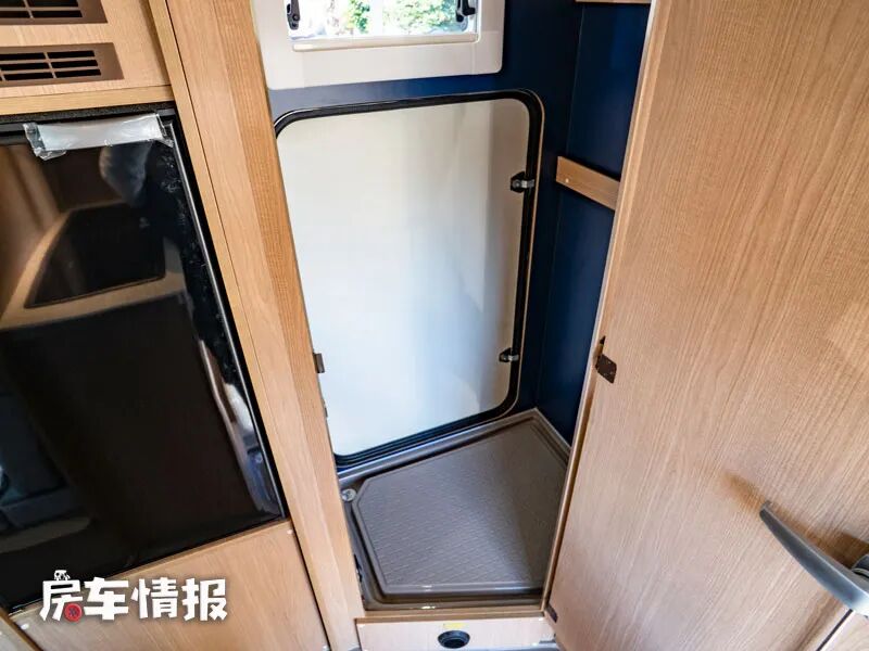 与乘客门相对的是一间独立的房间,后期可以按需加装一台便携式的马桶或者淋浴花洒,以满足日常的基础洗漱需求。