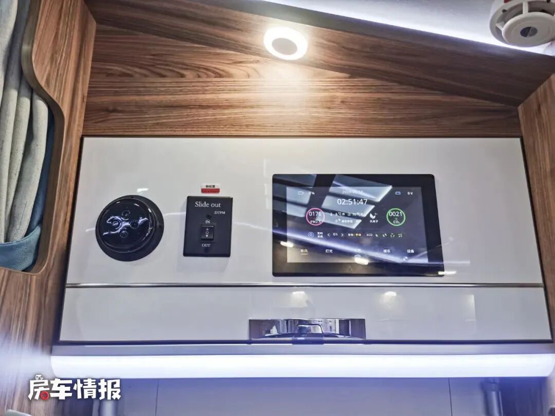电路上,这款房车搭载了一台3000W的逆变器,提供12度容量的锂电池,同时在顶部还配置了5块太阳能电池板;水路上则拥有300L的净水箱和70L的灰水箱,也足以满足日常用水用电的需求,同时全车还配置了12kW的热水器以及2kW的暖风机,另外还加入了智能语音控制系统以及新风系统,即便是雾霾天也能保证车内空气清新,可以说是非常智能的一款房车了。