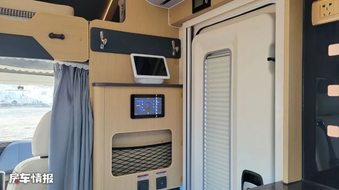 在娱乐需求方面,这款房车不仅提供了投影仪和幕布,还在乘客门前方提供了一台小米智能音响,满足日常的娱乐需求。