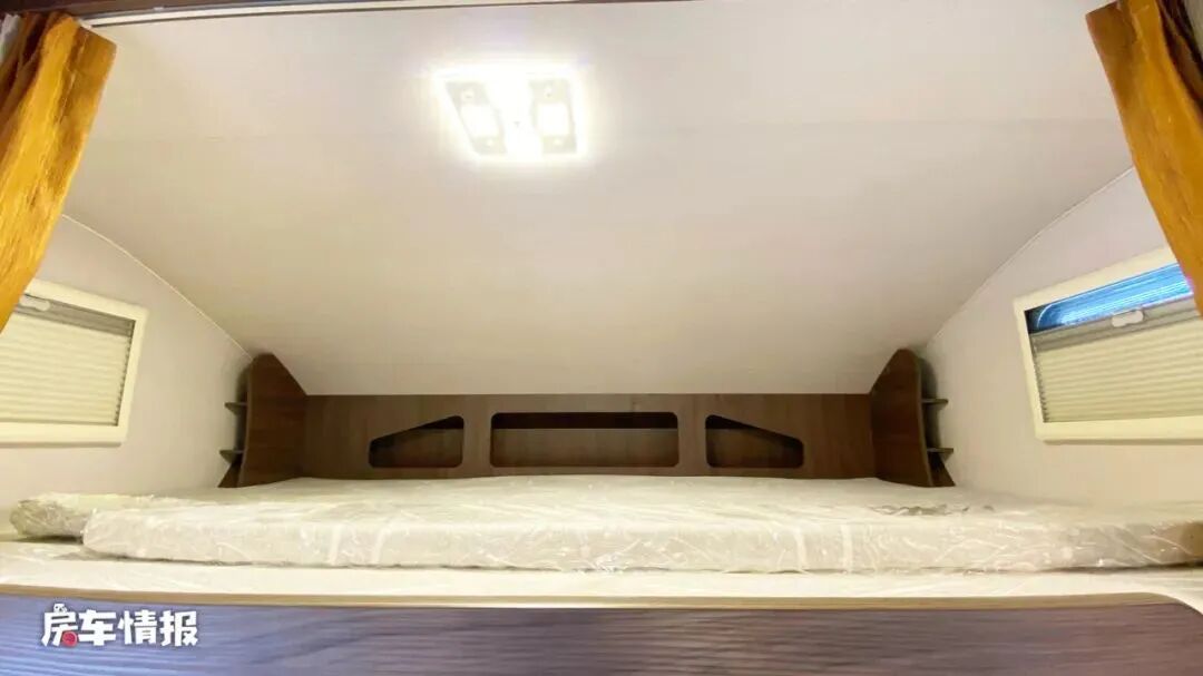 车内的整体配色比较的稳重,也是采用了相同的纵置尾床式布局,也可以满足两个成年人的睡眠休息需求。