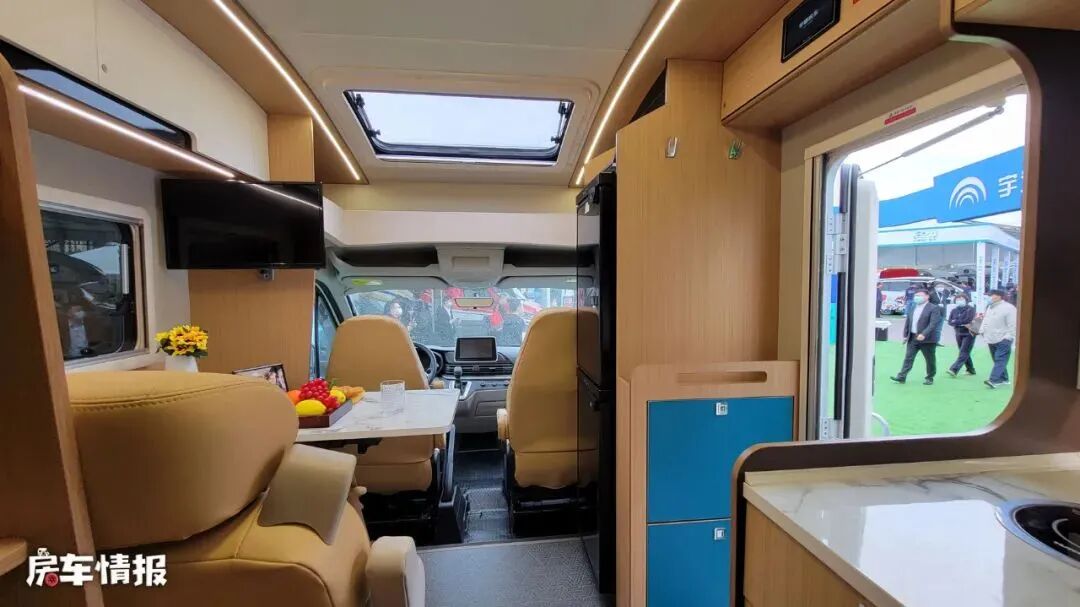 第一款来自于宇通房车的C311,价为39.8万元(具体价格以宇通官方为准),是宇通房车旗下小顶设计的一款代表型车型,因为其底盘采用了大通V90所打造,全车的长宽高分别为5990*2430*2880mm,可以说具有良好的道路通过率,而在车身长度与宽度上也与依维柯底盘的车型表现相当,足以保证内部的生活区空间。
