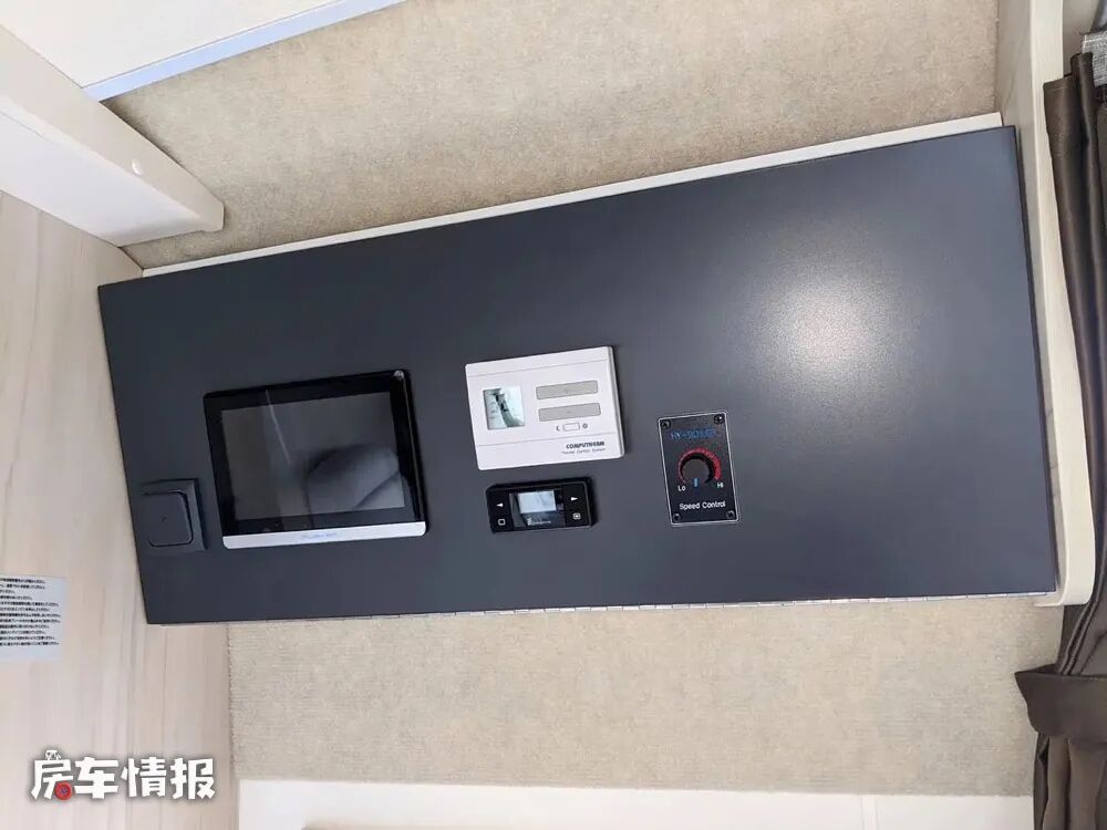 作为一辆轻卡房车,驾驶室内的视野相比其他房车来说更加的宽阔,但是相对配置就稍微简单了一些,机械式的按钮还是比较考验驾驶员的操控力的。