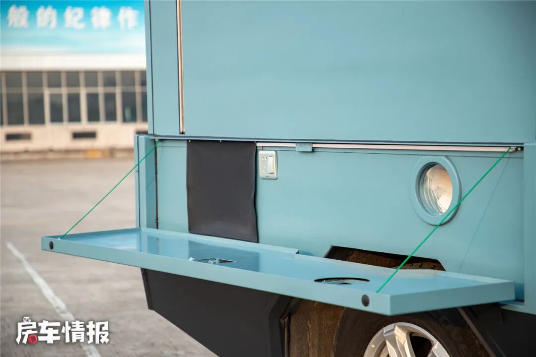 全车采用了玻璃钢材质厢体设计+三明治结构,内部还埋入了加强筋,可以使整辆车的箱体更加坚固牢靠,另外还提升了隔热保温隔音效果。除此之外,车身外部也配置了遮阳棚、外置操作台以及水电接驳口,满足日常的需求。