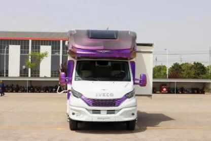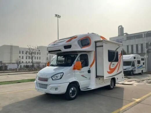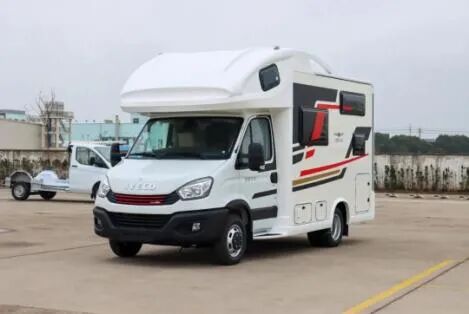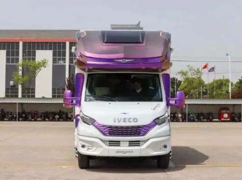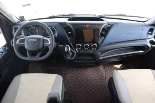 进口依维柯6.5吨,搭载的是3.0T柴油发动机,最大功率125kw,170马力,匹配的是8速全自动变速箱,4X2驱动,加宽后桥并配有空气悬挂,房车的通过性更高,100L的油箱容积。