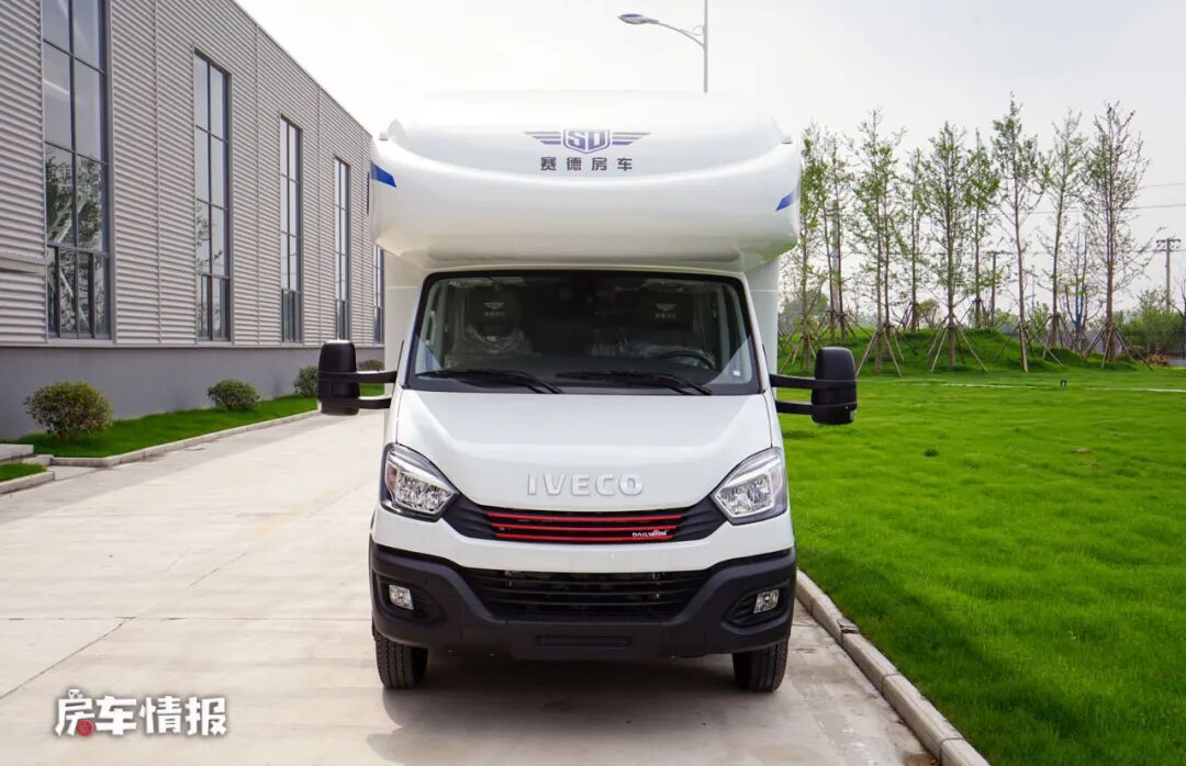这款房车是搭载依维柯欧胜底盘所打造的一款带有标准大额头式的C型房车,外观上不仅延续了赛德白鲸系列经典的造型设计,而且车身配色也使用了具有家族式的配色方案,使整辆车看起来更为清爽简约,而且整体的辨识度也是非常高的。