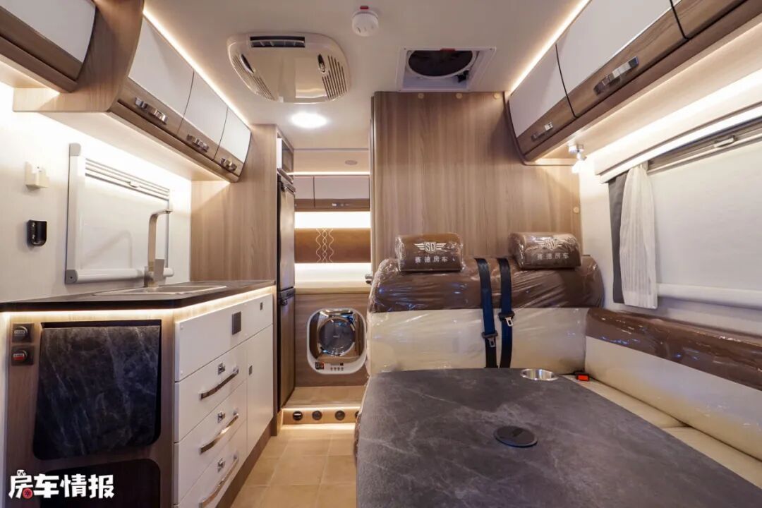 动力上,这款房车搭载了一台3.0T的柴油发动机,匹配8AT变速箱,最大功率为125kW,输出最大扭矩为400N·m,满足最新的国六排放标准。