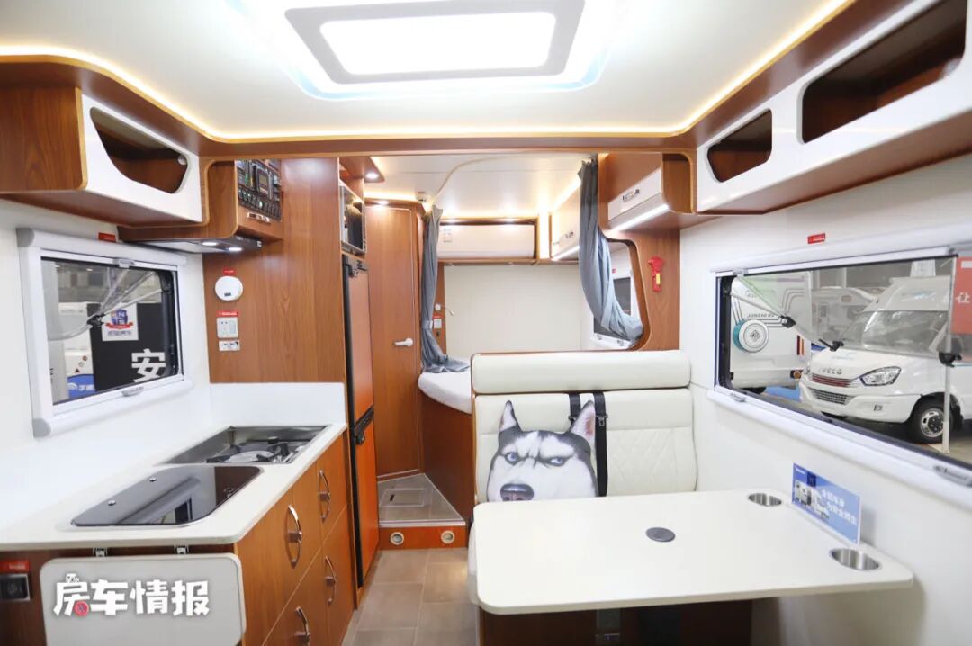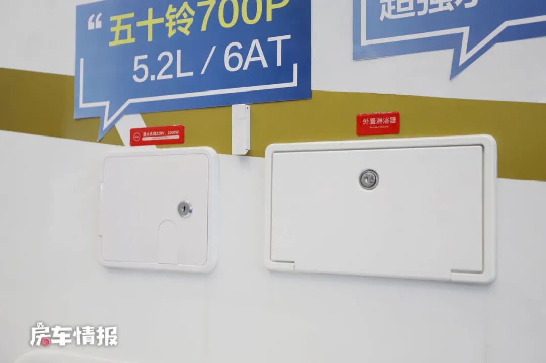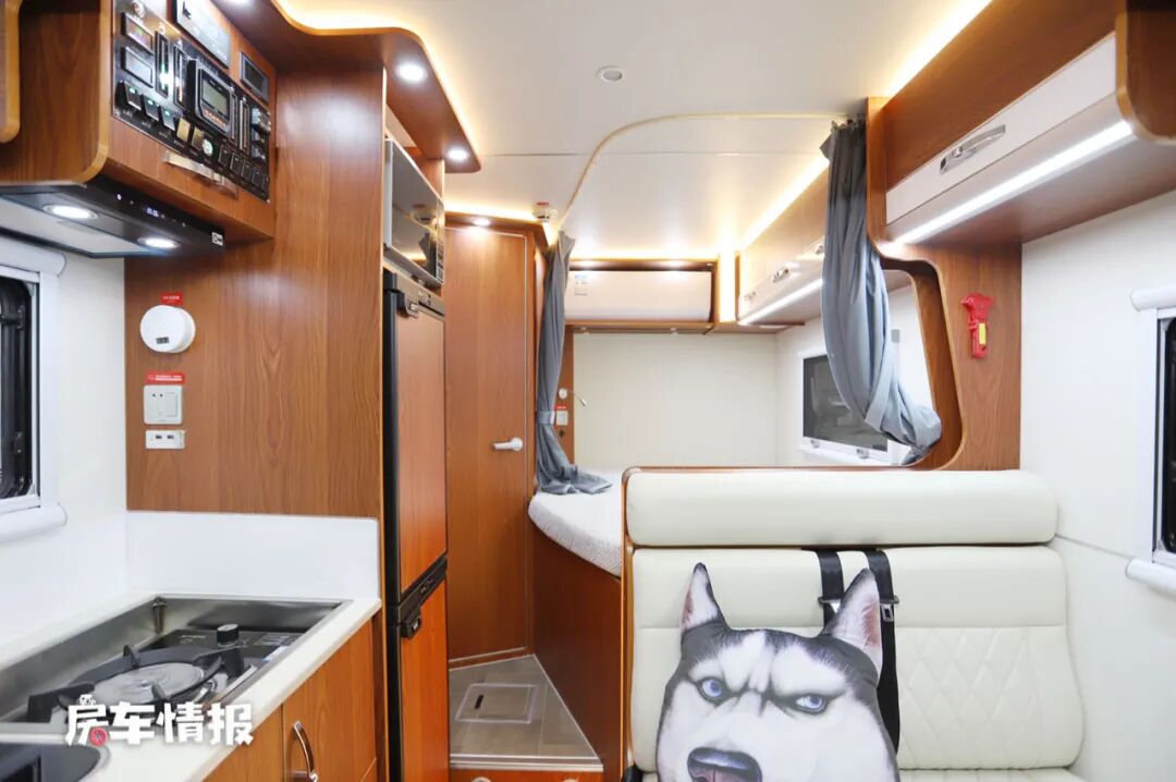 这款房车是基于五十铃700P轻卡底盘打造的,全车的车身尺寸与一般的C型房车相当,长宽高分别为5990mm*2278mm*2980mm,不到六米的车身长度满足蓝牌C本驾驶,而不到三米的车身高度甚至要比一般的依维柯C型房车还要低,所以通过率也更高一些。