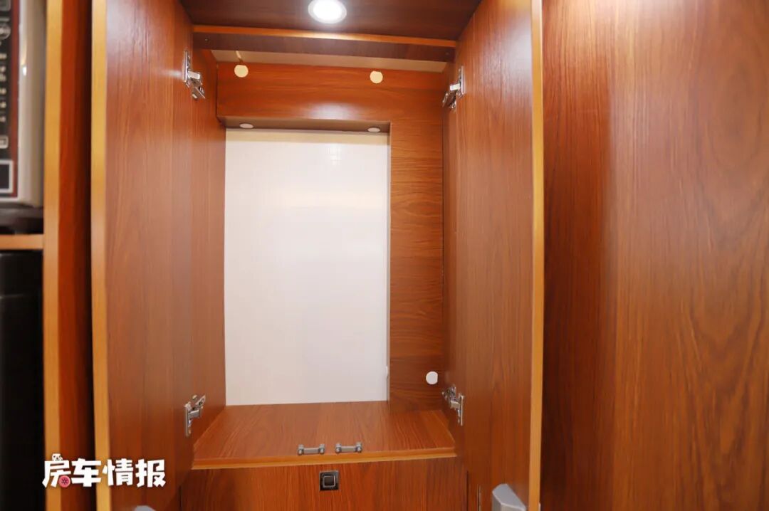 另外在卫浴室和前方的冰箱中间还提供了一竖排的储物柜,储物空间是非常充足的。