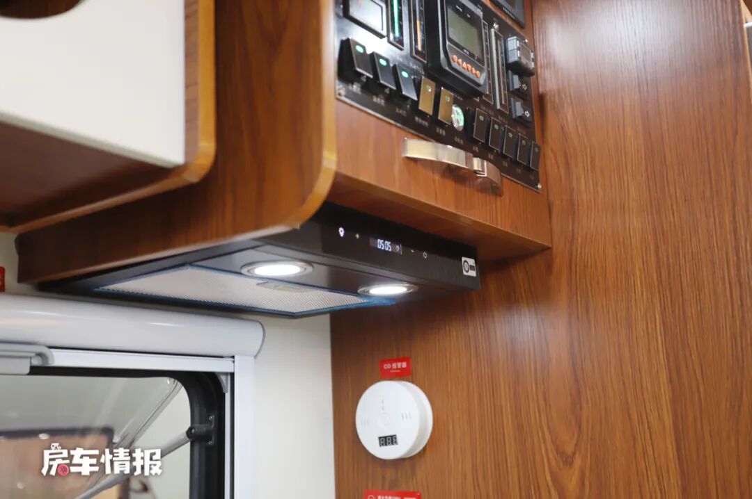 另外全车的水电控制面板也被安排在了抽油烟机的上方,观察起来也更方便。