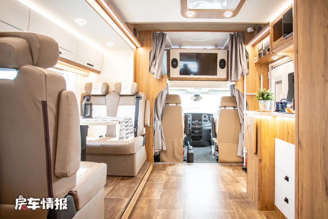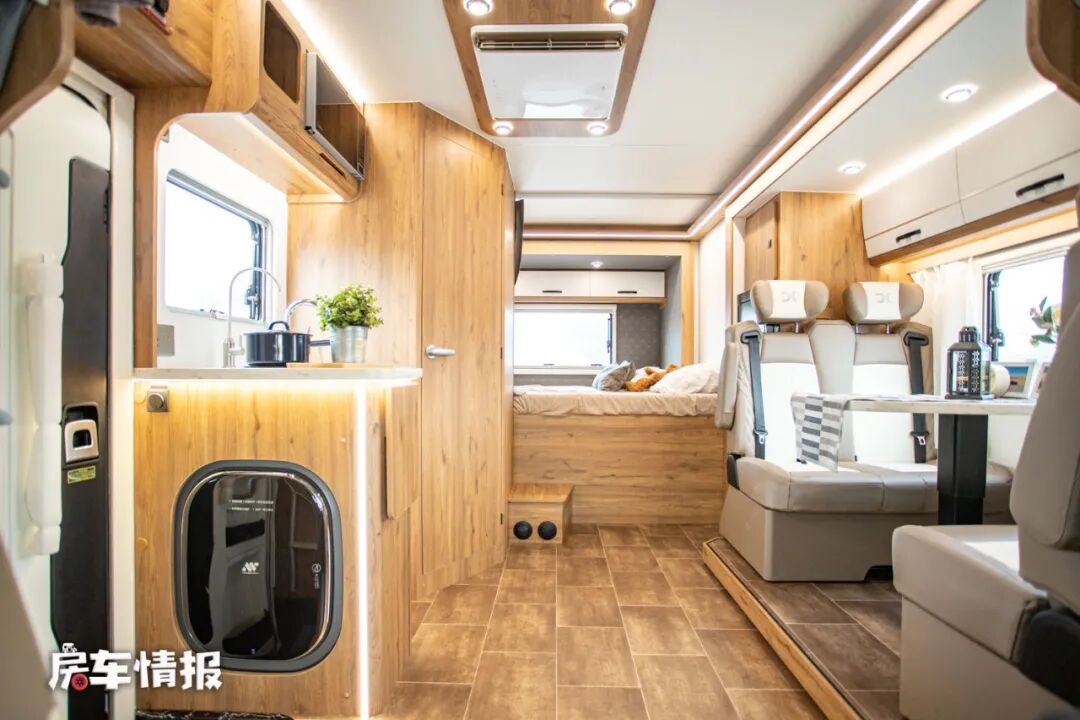 动力方面,这款房车搭载了一台3.0T柴油发动机,匹配8AT变速箱,最大功率125kW,最大扭矩400N·m,满足最新的国六排放标准,同时全车还配备了多功能方向盘、胎压监测、定速巡航、中控操控屏、倒车影像、倒车雷达等,方便驾驶员后期观察与操控。
