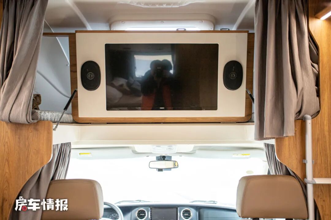 床板依然采用折叠的样式,翻起床板就可以看到下方一台32寸的液晶电视,满足日常的娱乐需求。