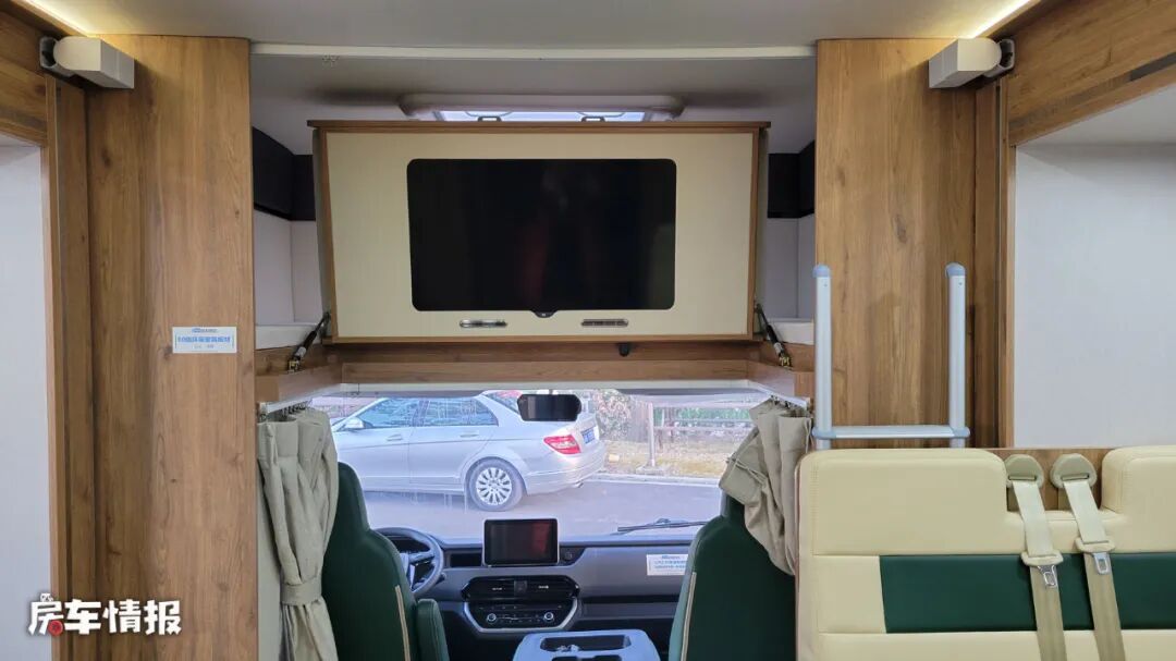 翻起床板则可以看到下方一台32寸液晶电视,可以为日常提供基础的娱乐项目。