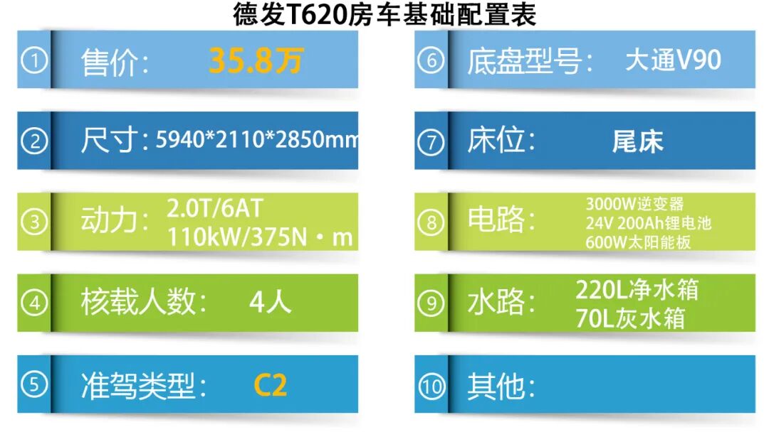这款搭载大通V90底盘所打造的一款小顶C型房车——德发T620,整体上的配置还是比较主流实用的,现在这款房车的报价为35.8万元,不知道结合整体您感觉如何呢?欢迎在下方的评论区和我们分享您对此车的见解和看法,下期再见~