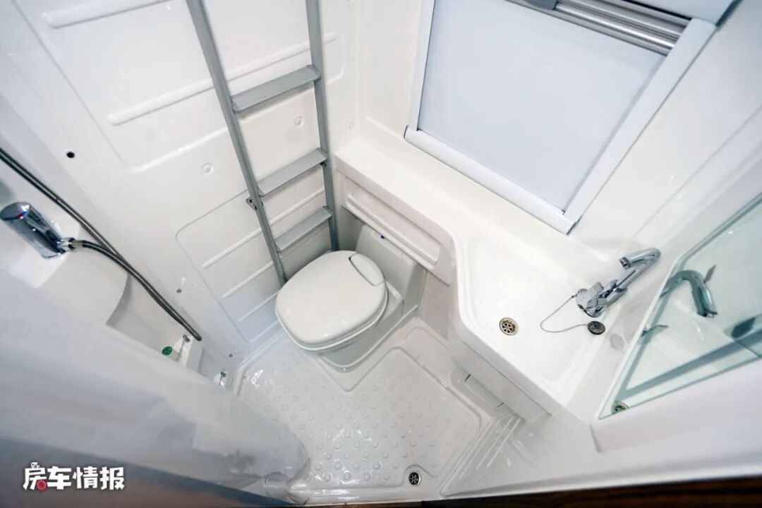 最内侧是全车的独立卫浴室,内部提供了基础的马桶、淋浴花洒、洗手台和梳妆镜等设施,日常的洗漱需求可以得到充分的保障。