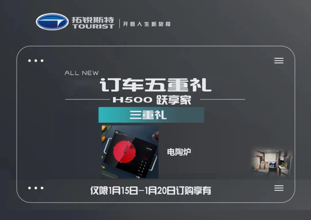 2022年拓锐斯特全新车系释放格调魅力震撼上市,以跃进H500为基型车打造舒适豪华房车。传承拓锐斯特纯粹全铝车身血统,统合型酷简锐设计,配备专利安全车架,全系搭载2.8L黄金动力,标配即高配的价值引领行业潮流。