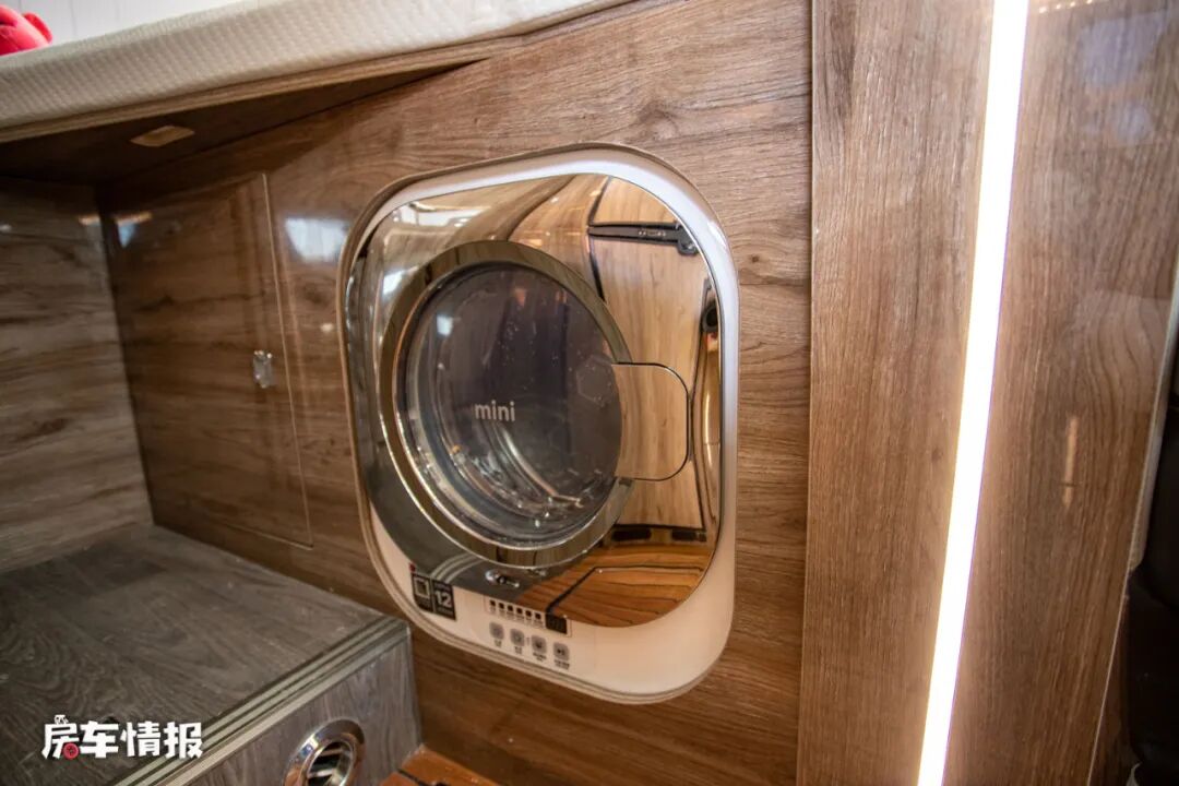 另外在床板下方还配备了一台小型的洗衣机,可以清洗一些贴身的衣物。