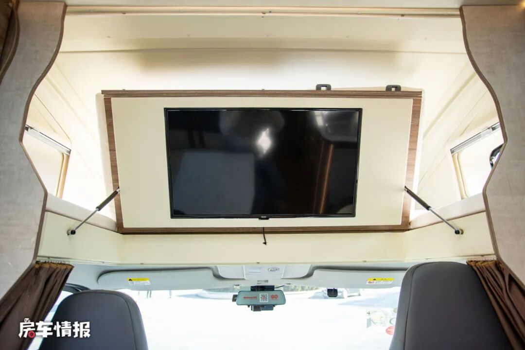 床板下方依然配备了一台32寸液晶电视,可供日常的娱乐需求。