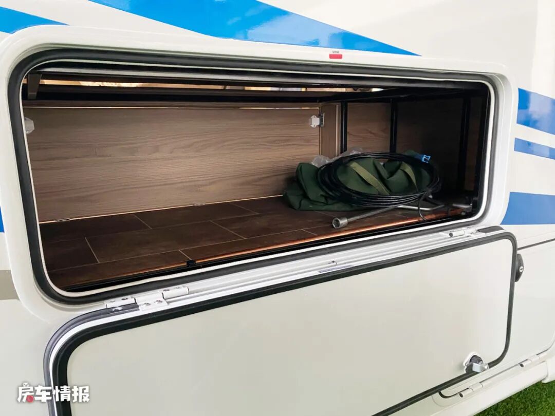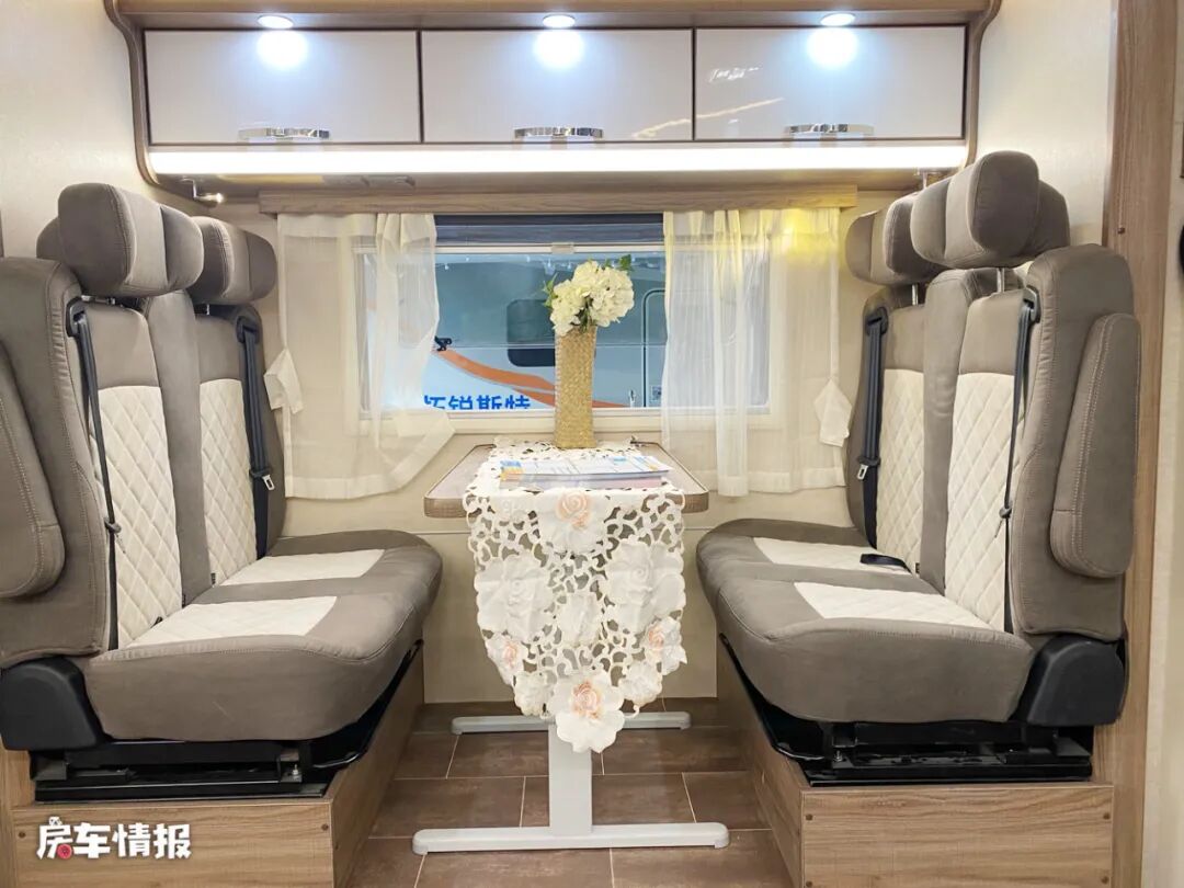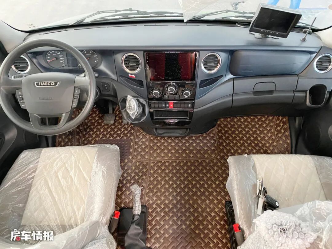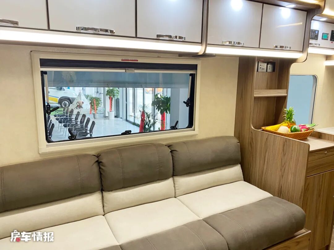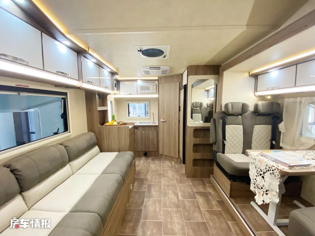 底盘上全车是基于2021款依维柯欧胜为底盘,车身尺寸上,全车的长宽高分别为5995*2498*3130mm,作为一款单拓展车型,在不打开拓展时整体的宽度就将近2.5米,可见车内空间的表现一定非常不错。