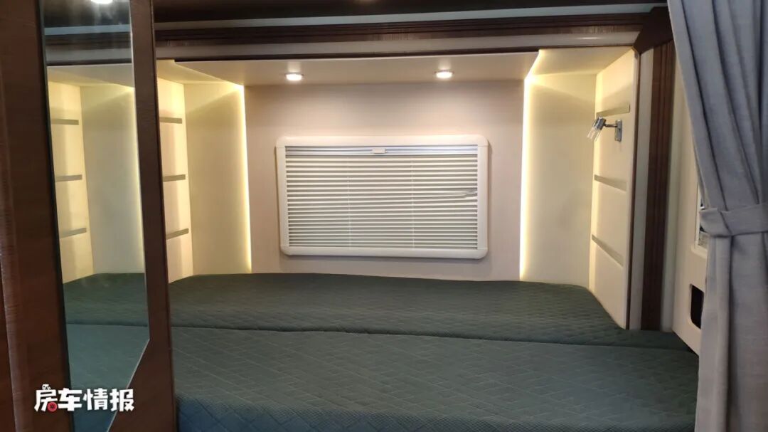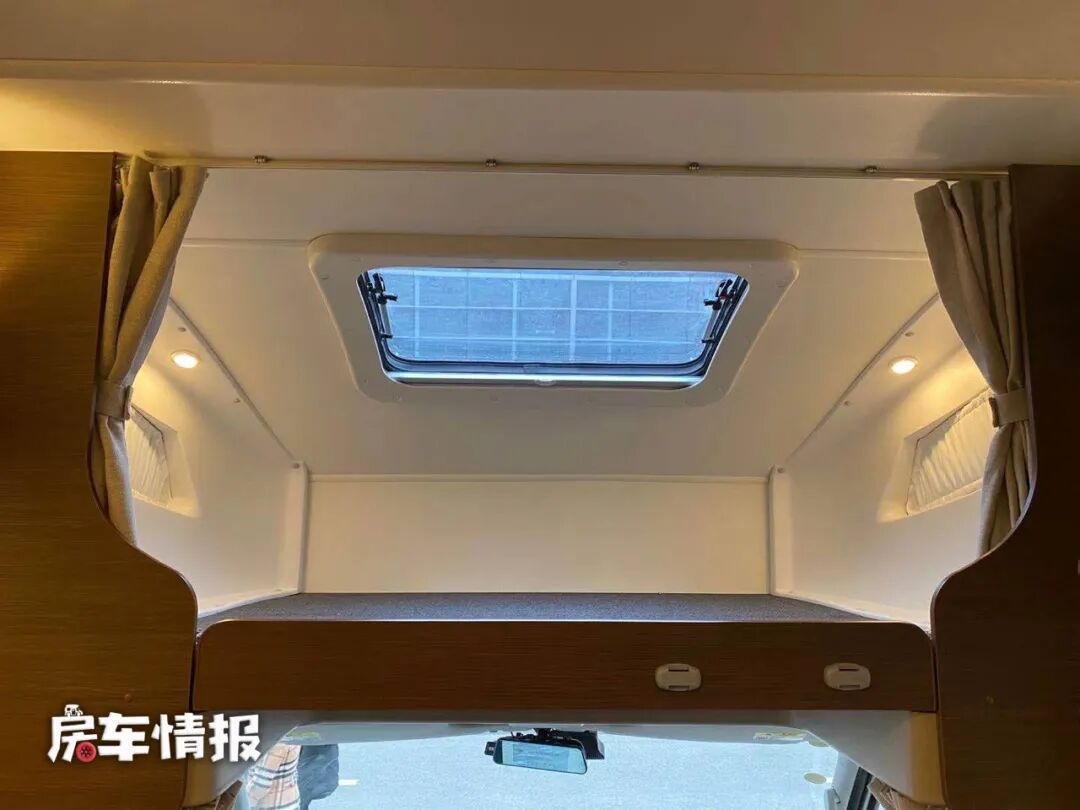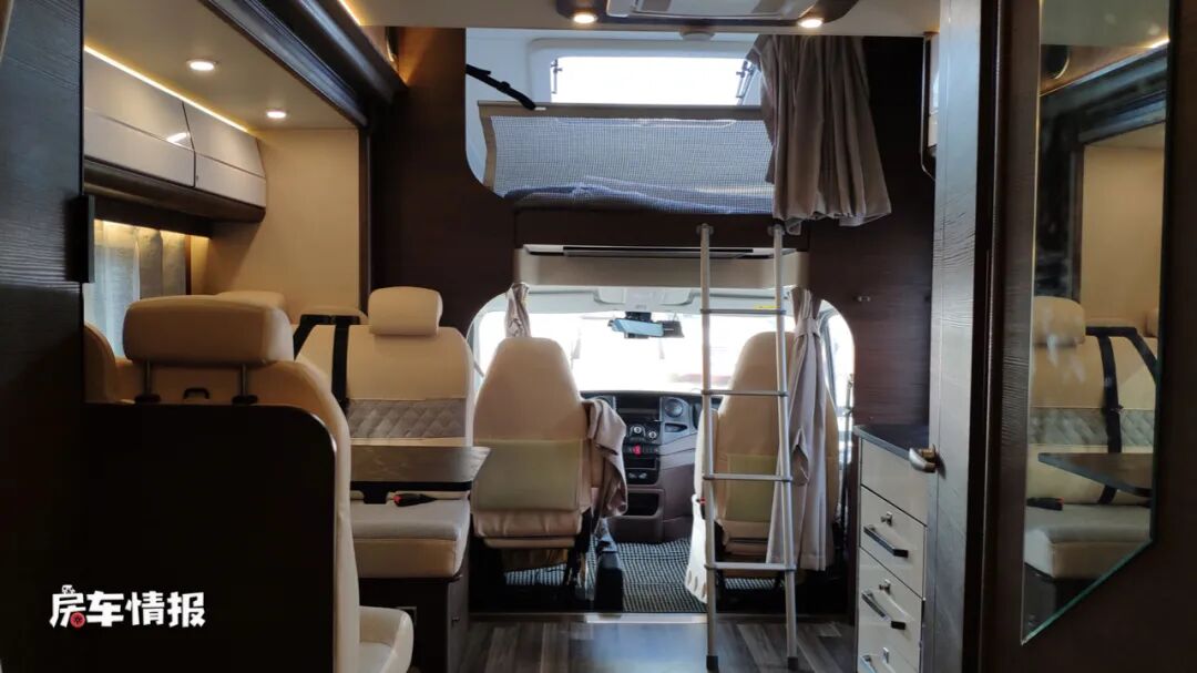 除去尾床之外,在前方驾驶室上部的额头区域内还提供了一张额头床,平时也可以为两个成年人提供休息睡觉的地方,同时配备了一部爬梯,方便上下床。
