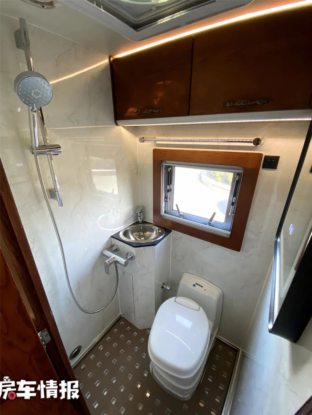 水电方面这款车提供了两台3000W逆变器、4000W汽油发电机、24V 800Ah锂电池(约合20度电)、1200W太阳能电池,另外还有300L净水箱、75L灰水箱和24V 9000W伟巴斯特高原版燃油加热系统,足以满足日常使用。