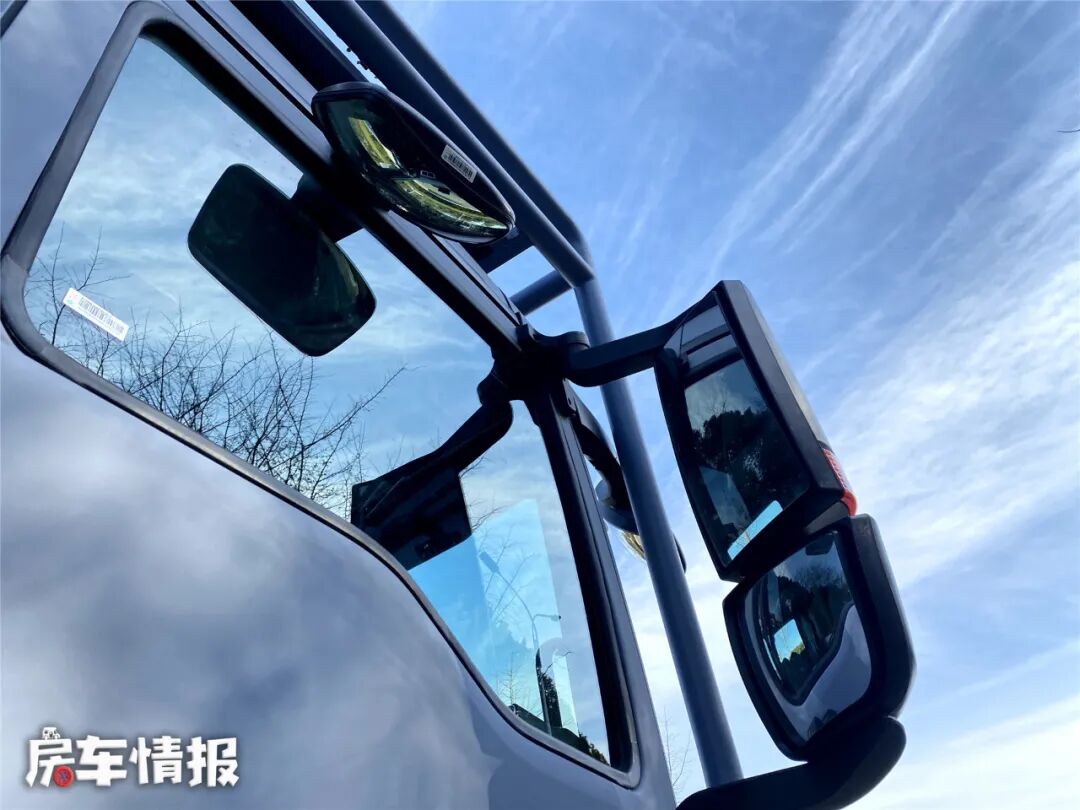 方向盘没有想象中的那么沉,基本上和一些轻客相当,整体还是比较轻的,不过方向盘的尺寸太大了,而且圈数也比较多,需要适应一下才行。至于大家说的盲区问题,个人感觉还可以,超广的后视镜视角再加上不到6米的车长,基本上可以照顾得比较全面。由于我是首次驾驶,就在封闭路段试了试,虽然时间不长,但也算了了一番心愿,重点是用实际证明C1本真的可以开重卡房车!