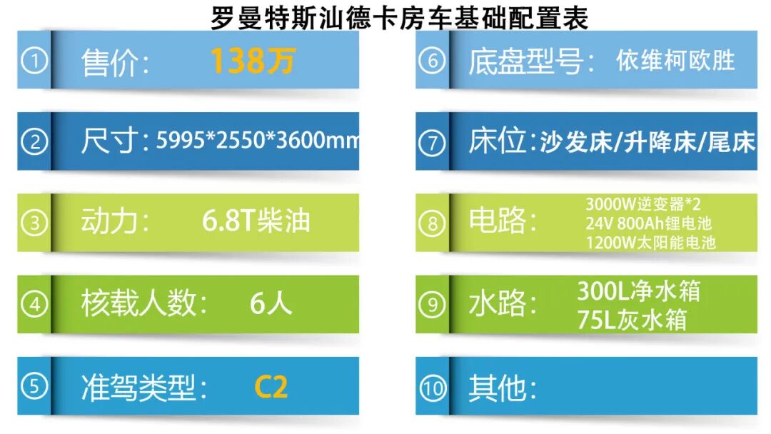 总的来说,这款罗曼特斯汕德卡房车整体表现还是比较符合我的预期的,超高的水电配置、同类型少见的4床位+贯通式设计,都为这款车型提升了实用性,目前这款车的售价是138万元,大家觉得如何呢?更多房车视频、房车资讯欢迎持续关注房车情报~