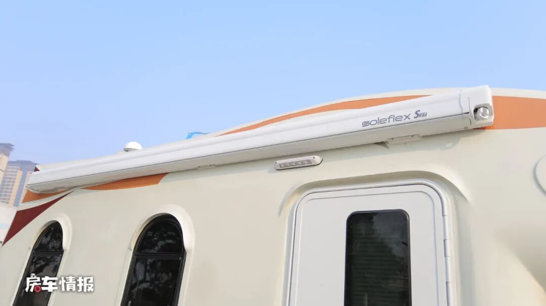 外观上,这辆车也和主流的房车造型不太相同,飞翼型的额头设计更显得灵动,也自带品牌辨识度,车身外部配置了基础的手动遮阳棚、外置抽拉灶台以及水电接驳口,可以满足基础的生活需求。