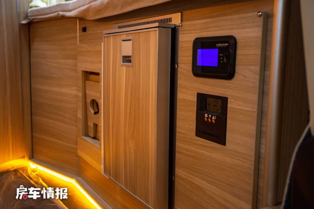 最后说一下这款房车的水电系统,电路上,整车搭载了一台2000W的充逆变一体机,配备了300W的太阳能板,提供了一块540Ah的磷酸铁锂电池;水路上,这款房车提供了110L的净水箱和45L的灰水箱。另外,全车使用驻车燃油液体/空气加热器,水电和空调都能够满足平日的需求。