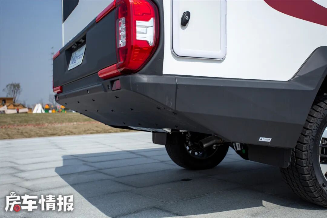 这款新车也是搭载了当下最新的上汽π 2.0T双增压柴油发动机,这也是T90底盘中最强劲的一版,可以带来500N·m的峰值扭矩和160kW的最大功率,另外全车还匹配采埃孚8AT变速箱,搭载博格华纳TOD智能四驱系统与后桥差速锁,可根据地形自由切换驾驶模式,整车的接近角为28°,离去角为27°,另外驾驶室和生活舱采用分体软连接结构,可以说完全能够从容的面对崎岖的道路。