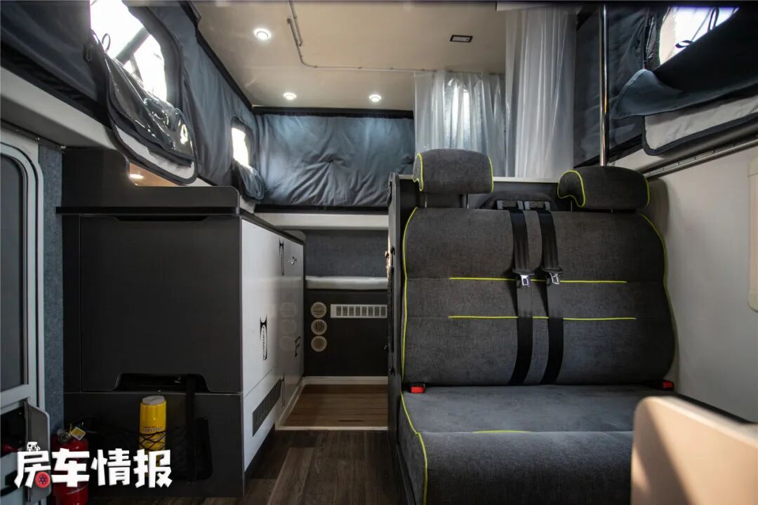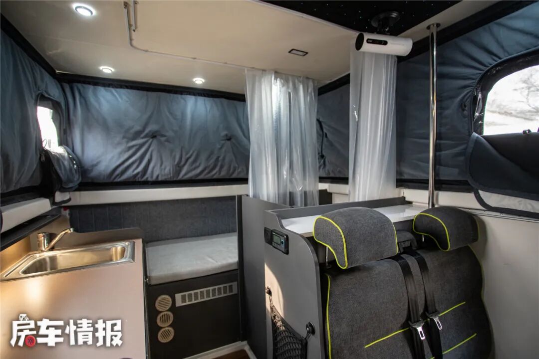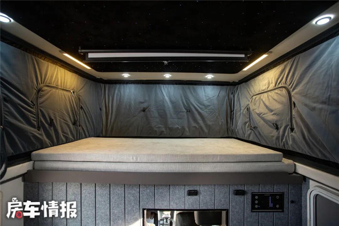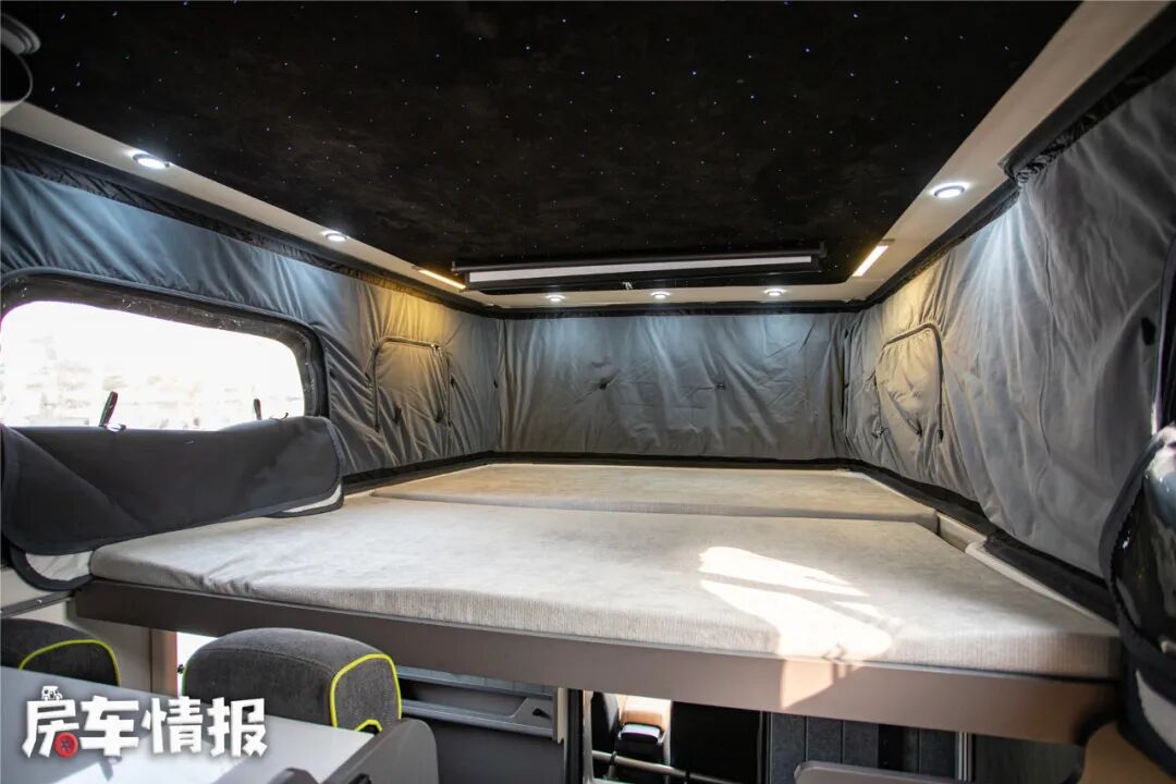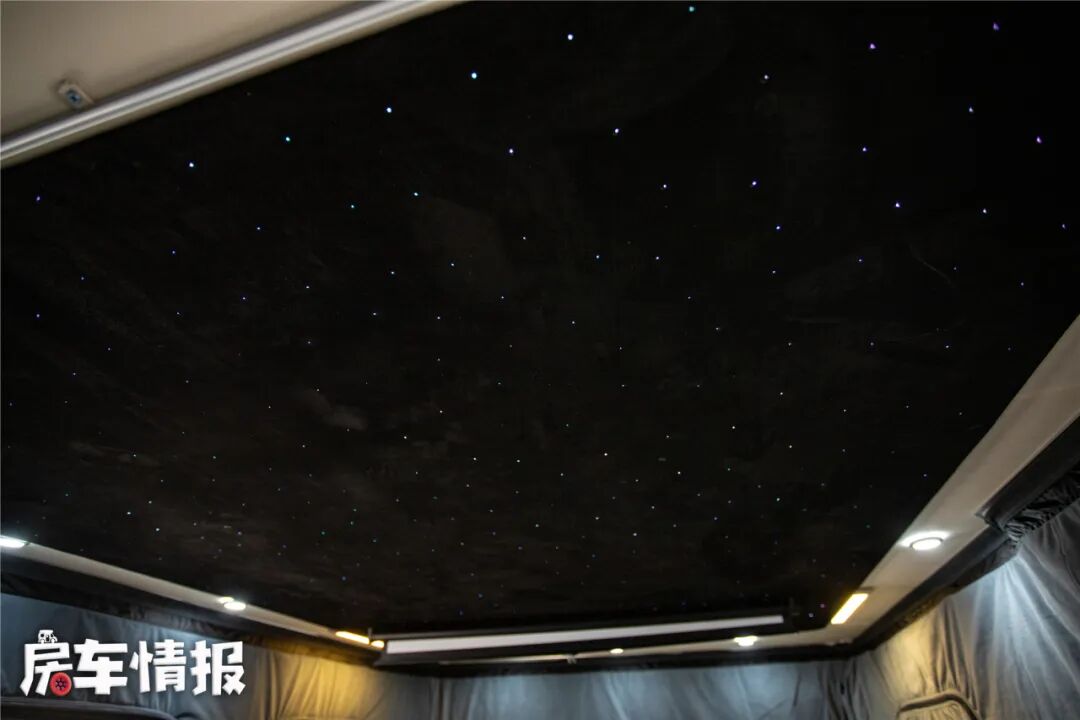 车内的顶部还加入了一个趣味十足的星空顶,营造出了一定的豪华感,不过个人觉得这也让生活区稍显压抑,如果能换成天窗可能会更通透。