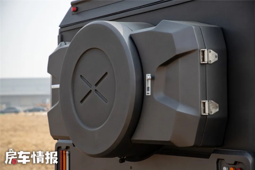 车厢尾部加入了一个机甲风的选装背包,内部可以存放备胎或者固定一些常用工具拿取都比较方便,另外说实话,有了这个工具箱,整车尾部的气质立马变得不一样了。