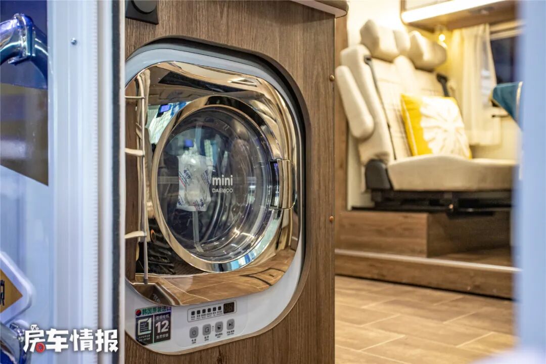 位于橱柜前方还提供了一台带有烘干功能的洗衣机,提升了日常使用的便利性。