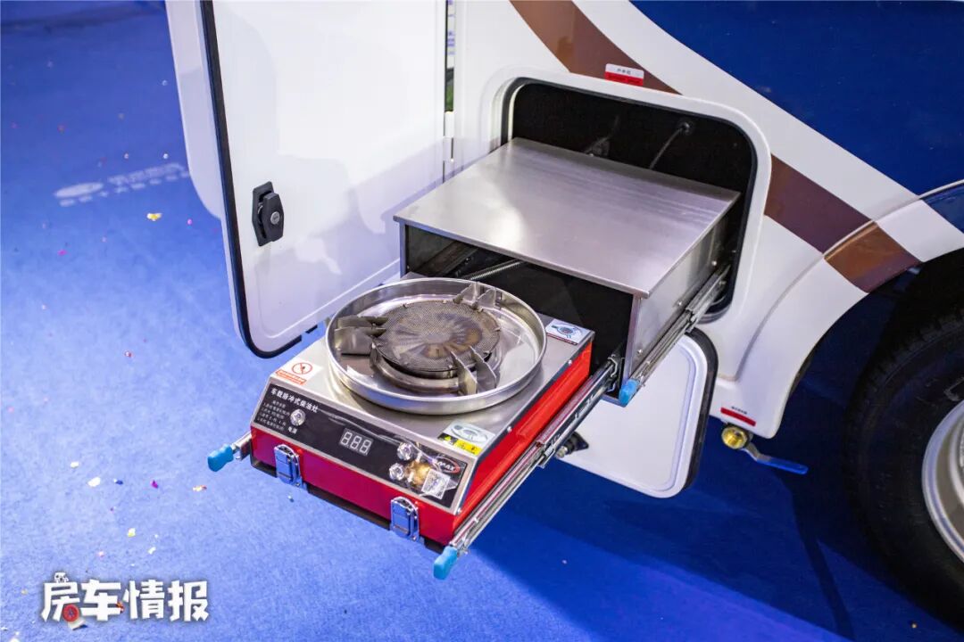 车身外部也提供了丰富的外部设备,如遮阳棚、抽拉柴油灶、220V输出电源等,位于车厢尾部还提供了一个贯通式行李箱,内部空间非常大,能够轻松放下旅行中的行李物品。