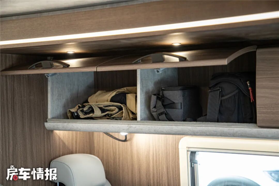 车厢尾部依然是一个空间超级大的贯通式储物箱,内部设计的十分规整,可以把旅行中的行李轻松放进去,完全不用担心无处安放,内侧还带有照明灯带,提升了夜间使用时的便利性。