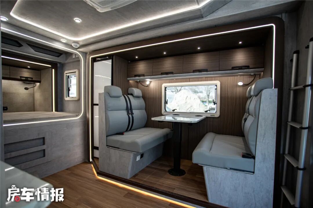 车厢尾部是一个可拓展出660mm的后拓展,搭配左侧的750mm侧拓展机构,可以在很大程度上拓展生活区空间。