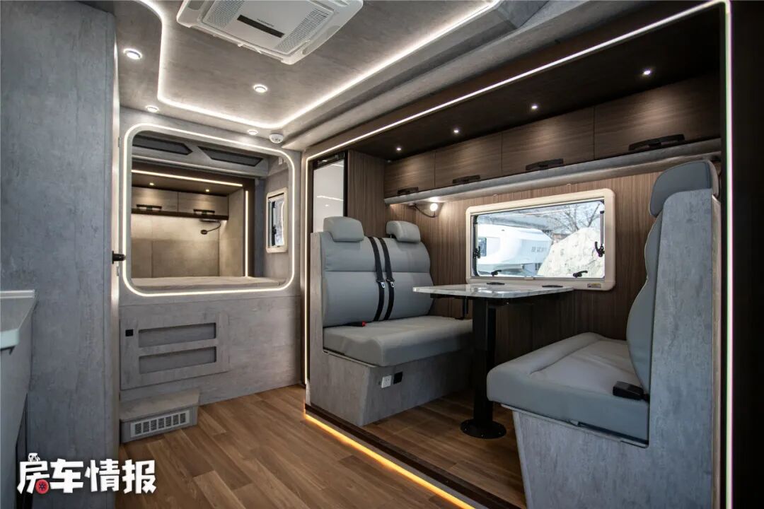 另外在取暖方面,这款车还提供了驻车暖风,搭配四明治玻璃钢车身、双暖风机设计、管路防冻设计等,实测在零下35摄氏度的内蒙,依然可以睡得很惬意。